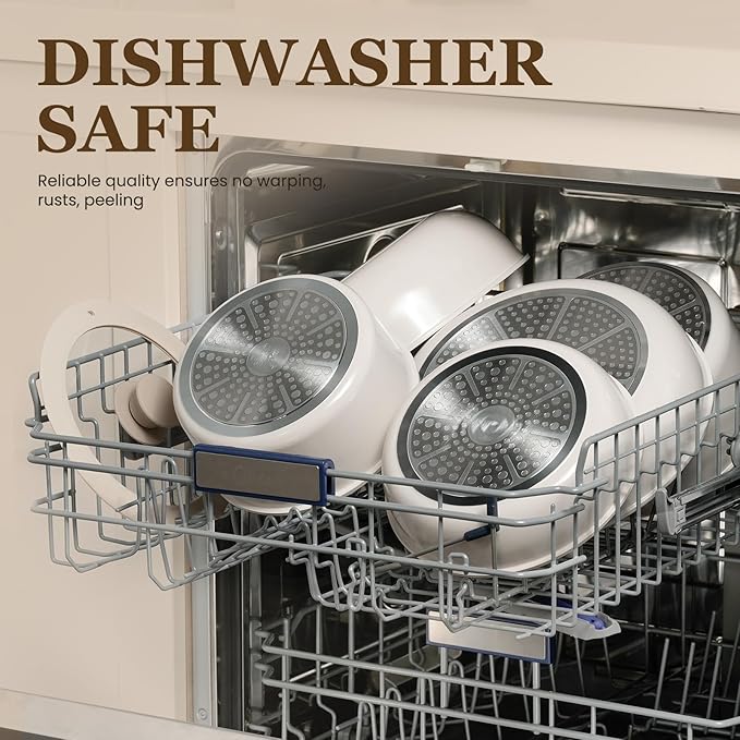 - γπππ¦π¬ π πππ‘π§πππ‘γEasy Maintenance: Clean the pans set nonstick cookware set with mild dish soap, warm water, and a soft sponge or cloth. Use silicone, plastic, or wooden utensils to protect the nonstick coating. For optimal lifespan, please hand wash. If using a dishwasher, remove and dry promptly.