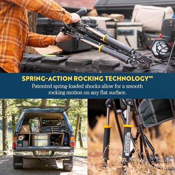 - OUTDOOR LIVING. Great for relaxing by the campfire or sideline, the Stowaway Rocker from GCI Outdoor is an adult rocking chair that's easy to carry and set up. Relax in comfort on your adventure with smooth rocking on any surface, anywhere.