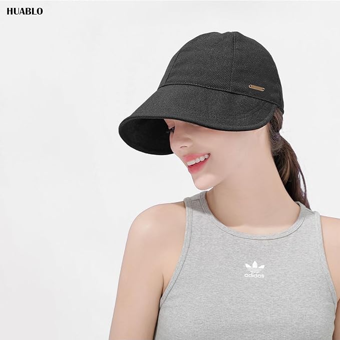 huablo]UPF 50+Womens Sun Hat UV Protection Hiking Fishing Hats Wide Brim Hat Adjustable Ponytail Packable Sun Cap