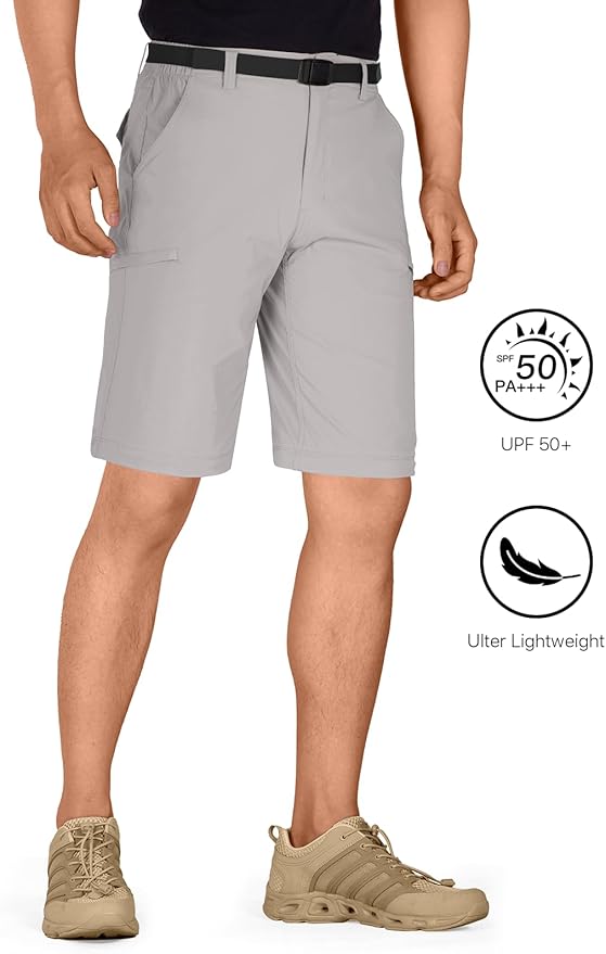 FREE SOLDIER Men's Outdoor Convertible Hiking Pants with Belt Lightweight Quick Dry Tactical Cargo Pants Nylon Spandex