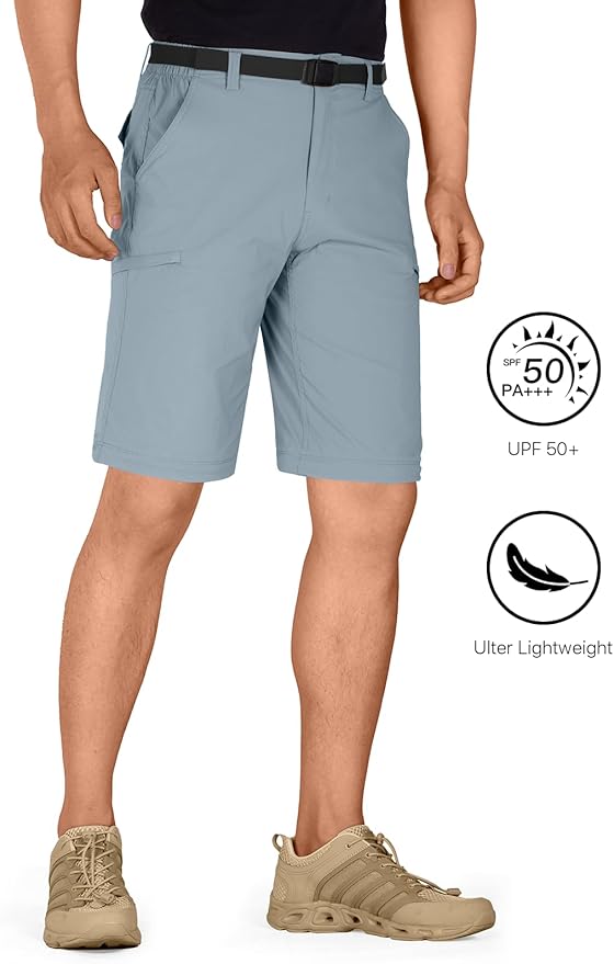 FREE SOLDIER Men's Outdoor Convertible Hiking Pants with Belt Lightweight Quick Dry Tactical Cargo Pants Nylon Spandex
