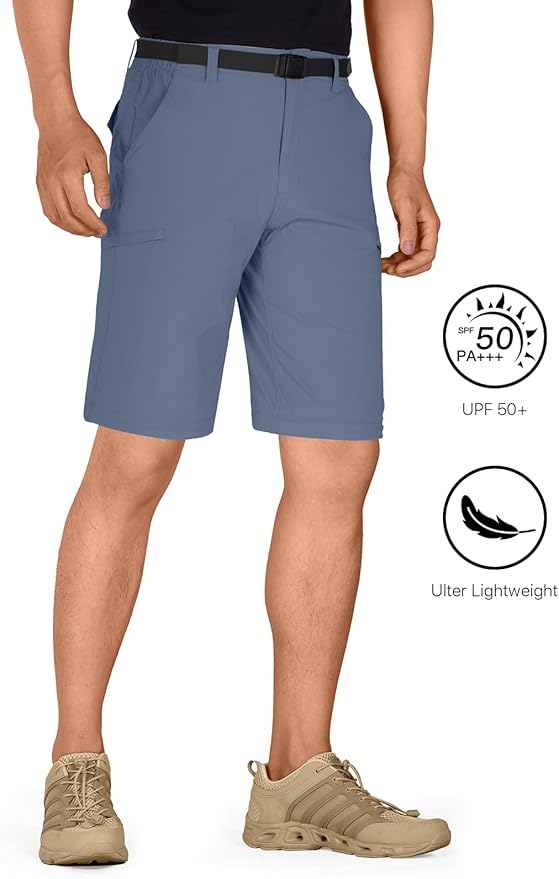 FREE SOLDIER Men's Outdoor Convertible Hiking Pants with Belt Lightweight Quick Dry Tactical Cargo Pants Nylon Spandex