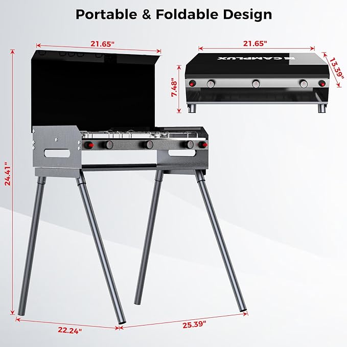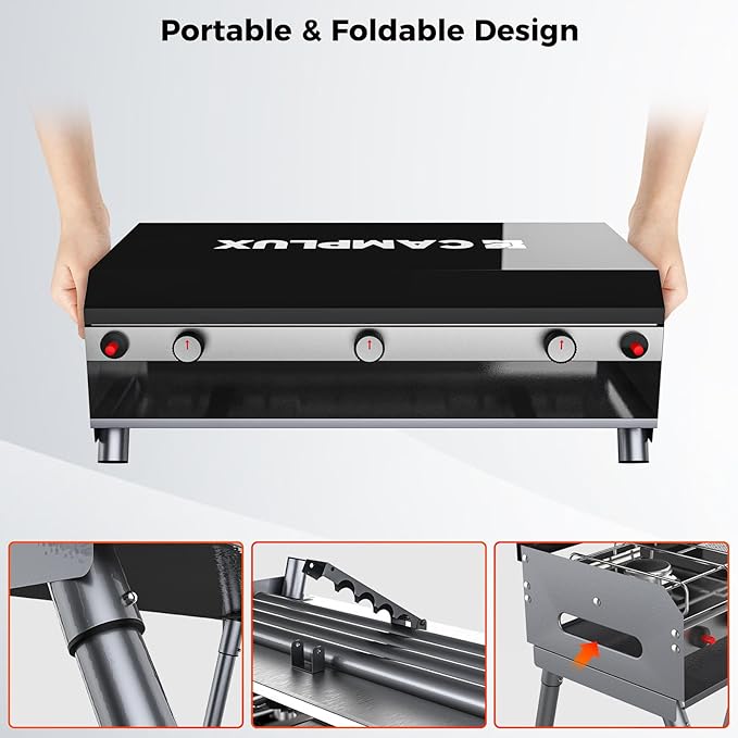 - EASY TO USE & CLEAN: The portable propane gas stove features a built-in piezo auto-ignition, no need for traditional matches or lighters. Easy to use, and suitable for any outdoor setting. Come with an effortless clean-up stainless steel surface and removable grill