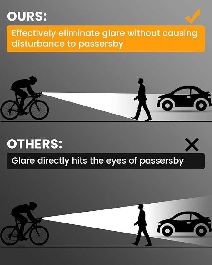 - Four Lighting Modes&Anti-Glare: The bike light for night riding provide four lighting modes - Low Beam, High Beam, Full Beam, and Strobe, different light can adapt to different environments and provide you with the desired light! The anti-glare design prevents the beam from directly hitting the eyes of oncoming individuals. Additionally, we include a free tail light to ensure you are visible in the dark and to enhance your safety