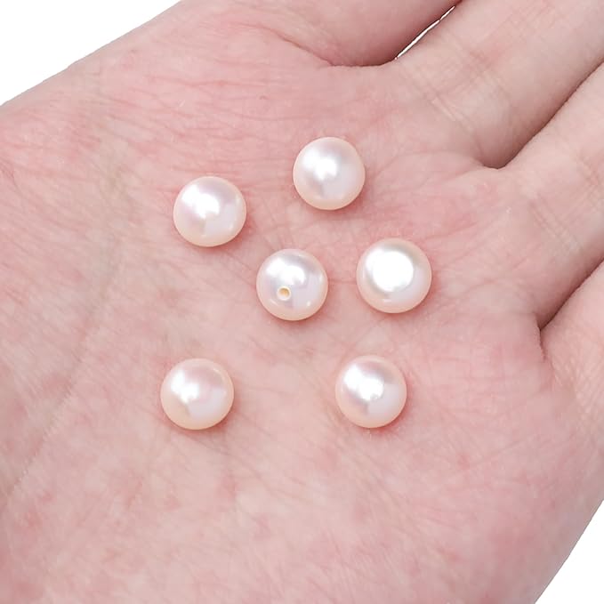 Natural Half Drilled Pearl Beads White 8-8.5mm 6pcs AAA Freshwater Cultured Loose Gemstone Beads for DIY Stud Earring Jewelry Making