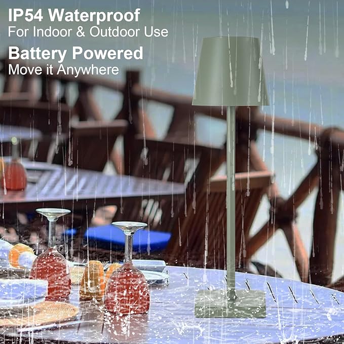 - Minimalist Design Table Lamp: Crafted from powder-coated aluminum with a sleek, simple design, this lamp is built to withstand the test of time both indoors and outdoors. It features a built-in LED wick that provides bright, non-blinding 360-degree illumination. The non-slip silicone base ensures it stays securely in place, even on breezy nights