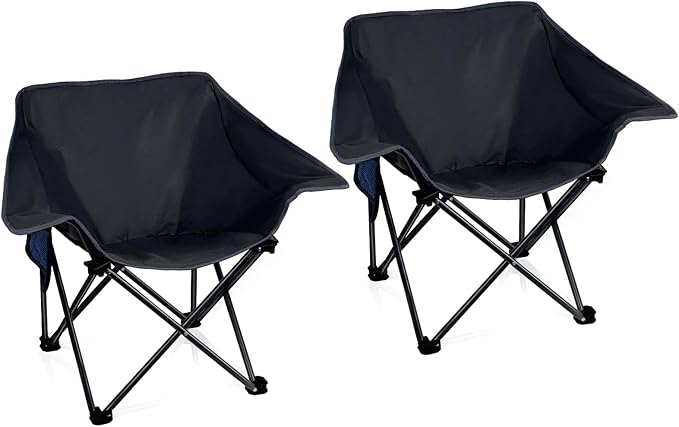 2 Pack Portable Camping Chair Compact Collapsible Outdoor Folding Sports Chairs for Adults Heavy Duty Camp Sporting Events Park Lawn 400 Lbs Black
