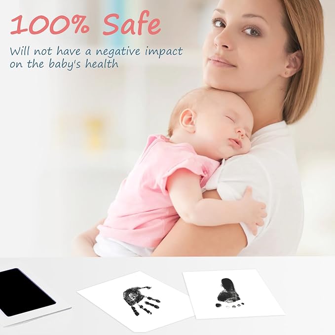 - [Safe Ink Pad]:This clean touch ink pad will not leave ink residue on baby foot. The baby footprint kit is 100% safe for your baby hands feet. New parents can safely use this baby handprint kit to print the baby handprint and footprint ,leave personalized newborn keepsake.