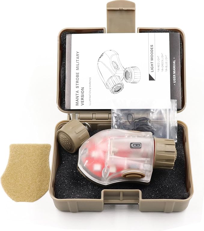 Tactical Helmet Light IR Strobe Military Identification Light with LED Visible Light Constant-on & Strobe Survival Signal Light (Tan-Blue)