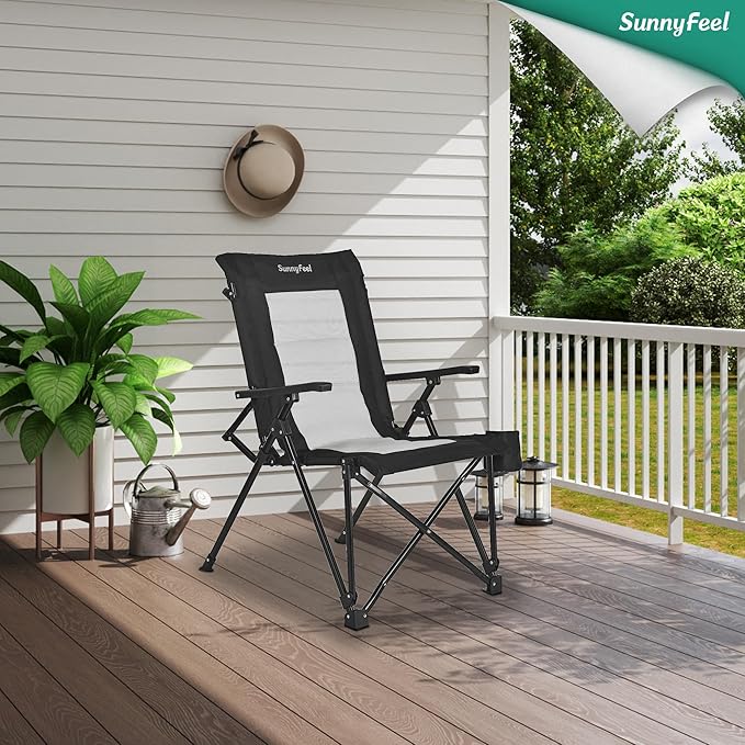 SUNNYFEEL Ergonomic High Back Camp Chair - 500lbs Heavy Duty Folding Chair, UV-Resistant Portable Camp Chair with Hard Armrests, Cup Holder& Bag for Outdoor, Basebal, Travel, Sports, Hiking, Fishing