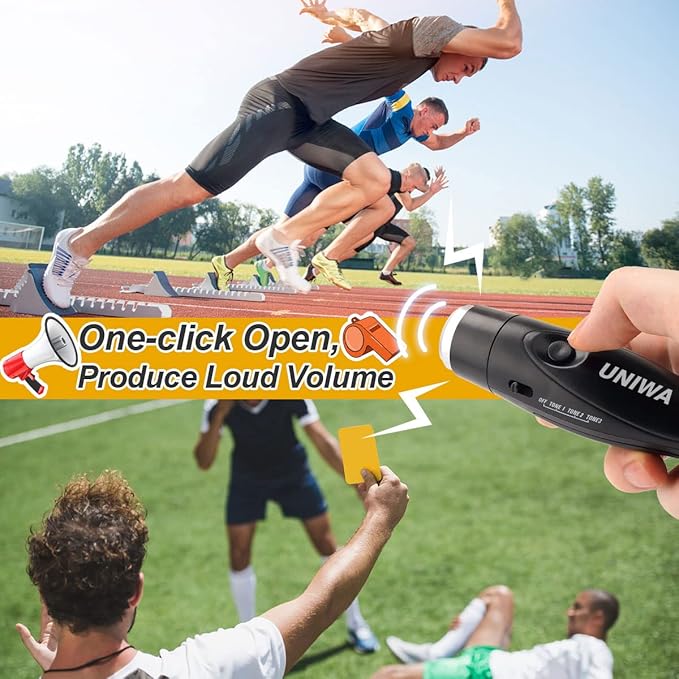 - 【125±5 High-Volume Electric Whistle】Purchase UNIWA 4 pack electronic whistle at one time to meet the massive needs of referees, coaches, teachers and officials.The handle electronic whistle gets rid of the traditional way of blowing a whistle with your mouth, and meanwhile provides a loud, clear, strong and easily recognisable sound.It will be more hygienic and convenient among all sports events, company activity, school game or other training etc.