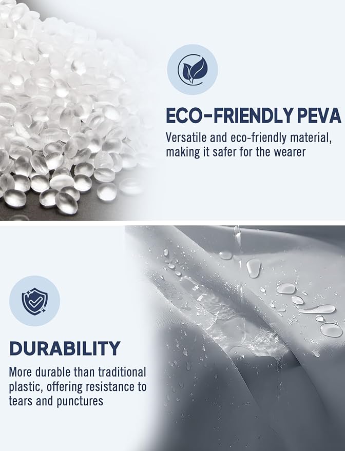- ECO-Friendly PEVA Meterial: This raincoat is made of PEVA new environmentally friendly fabric, which is non-toxic, odorless, and environmentally friendly. This fabric has excellent waterproof performance, allowing it to remain dry in humid environments and effectively resist various types of rainy weather. It comes with a drawstring hood to ensure optimal fit, which helps protect your head and face