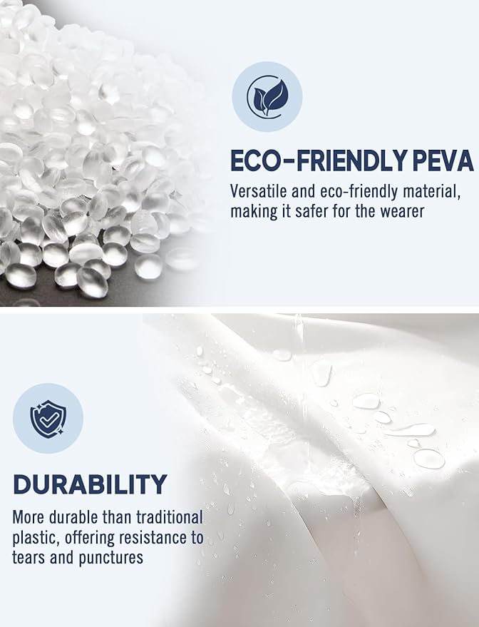 • ECO-Friendly PEVA Meterial: This raincoat is made of PEVA new environmentally friendly fabric, which is non-toxic, odorless, and environmentally friendly. This fabric has excellent waterproof performance, allowing it to remain dry in humid environments and effectively resist various types of rainy weather. It comes with a drawstring hood to ensure optimal fit, which helps protect your head and face
