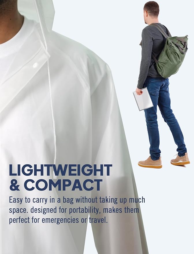 • Portable Emergency Gear:Our outwear rain coats can be quickly to unfolded and worn.And it folds up into an easily-manageable, lightweight addition to your backpack, briefcase or you can pack it in travel suitcase so you can continue being a tourist even when it's pouring.If you go out on business or hiking, it's best to keep it in the car or in your handbag