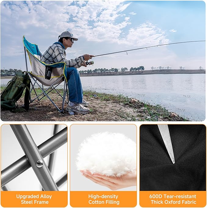 - 【Extra-Wide XL Padded Seat】With a generous seat size of 38" L x 24" W x 38" H, this comfortable lawn camp chair easily accommodates larger individuals, providing maximum comfort for extended sitting. The 750g of padding ensures superior comfort for your head, neck, and body.