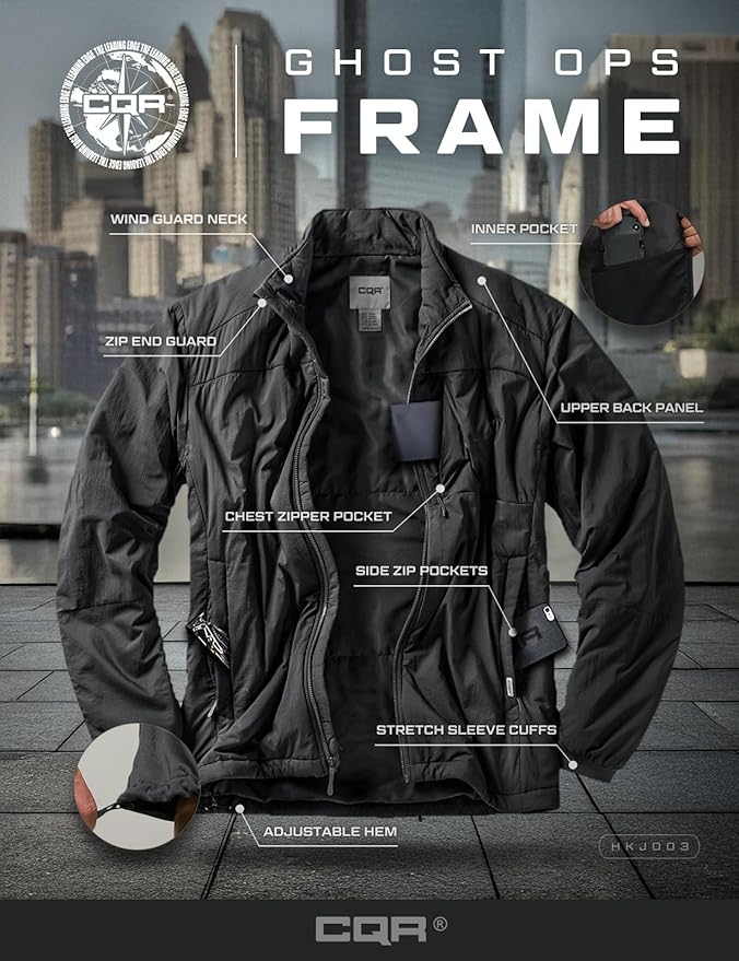 CQR Men's Lightweight Insulated Jacket, Windproof Packable Water Resistant Warm Active Coat for Hiking Work Outdoor Tactical