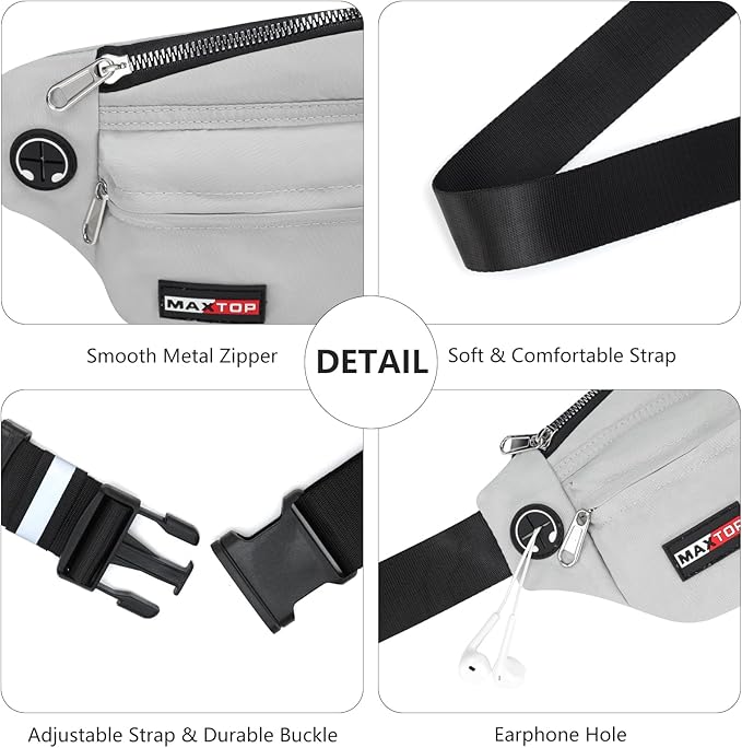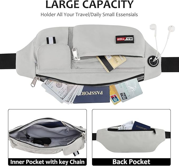 MAXTOP Fanny Packs for Women Men Water Resistant Waist Pack with Key Fob Hook Lightweight Belt Bag with Adjustable Strap Fitness Jogging Hiking Travel Sport