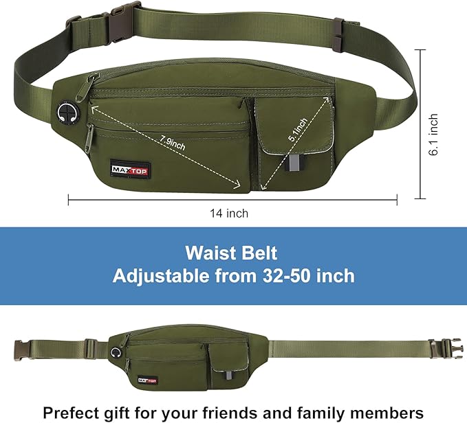 MAXTOP Large Fanny Pack Cross Body Bag Lightweight Belt Bag with Headphone Jack and 5-Zipper Pockets Adjustable Straps for Travel Dog Waliking Sports Running