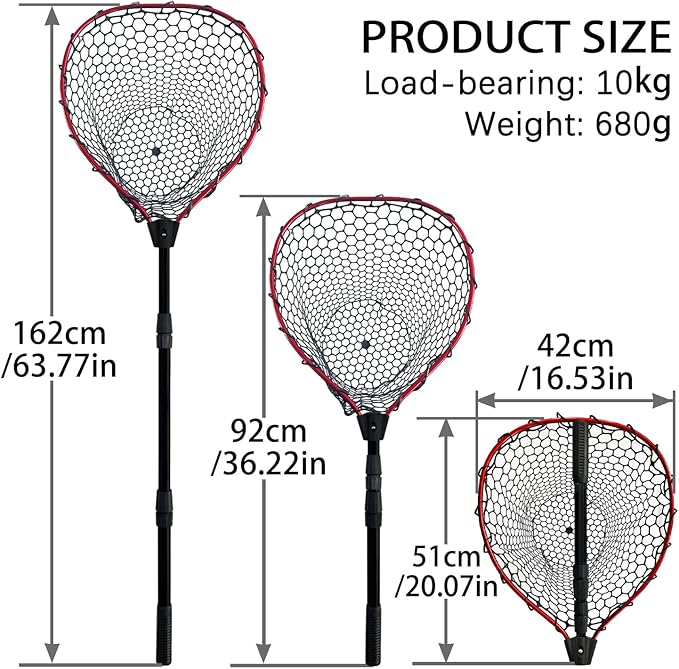 - 1.VERSATILE AND PORTABLE DESIGN The Fishing Net Offers Versatile Functionality And Portability With A Large Size And A Telescoping Handle That Extends From 37.8 Inches To 63.8 Inches, Allowing You To Reach Difficult Spots Easily.Whether You're Fishing In A Fishpond Or Out On The Open Ocean, This Net Is Suitable For Various Fishing Needs. It Is Also Foldable And Lightweight, Making It Easy To Carry And Store.An Excellent Addition To Any Angler's Gear.