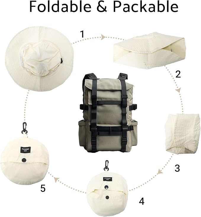 • FOLDABLE & PACKABLE: When you have no need to put your sun bucket hat on , you can easily have it folded into a small round bag and selectively hang it up or tuck it away in your backpack, handbag, or pocket with ease
