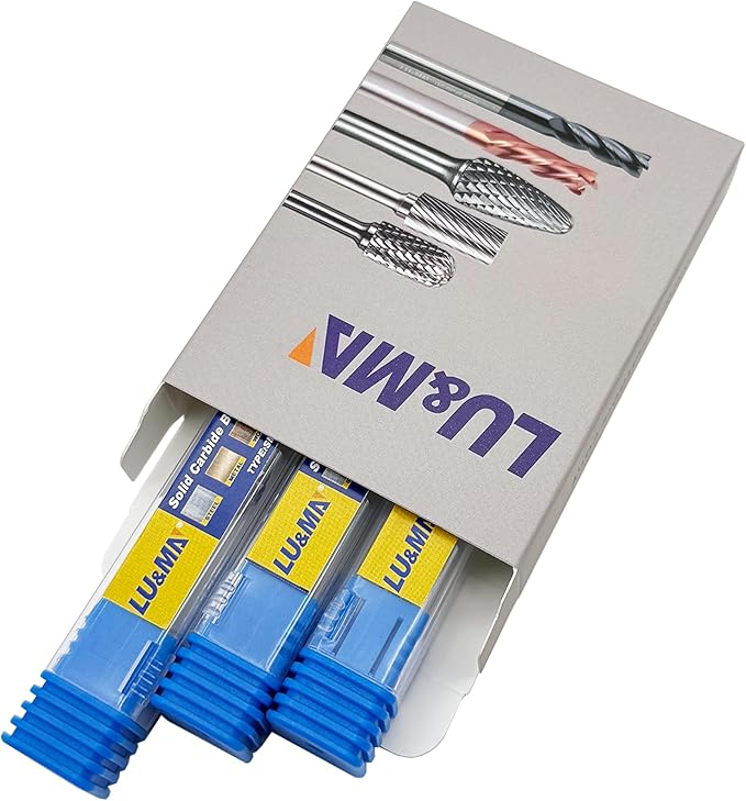 LU&MN SG-5 Double Cut Tree Shape Tungsten Carbide Rotary Burr with 1/4" Shank for Die Grinder and Drill,3PCS