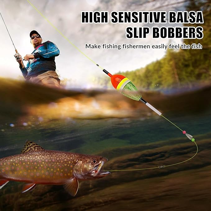 - EXCELLENT PERFORMANCE: Balsa wood sliding float device is lightweight, can be quickly into the water, low resistance, higher sensitivity, so that anglers can easily sense the fish's subtle bites, effectively improve the hooking rate, bring you a simple and comfortable fishing experience!