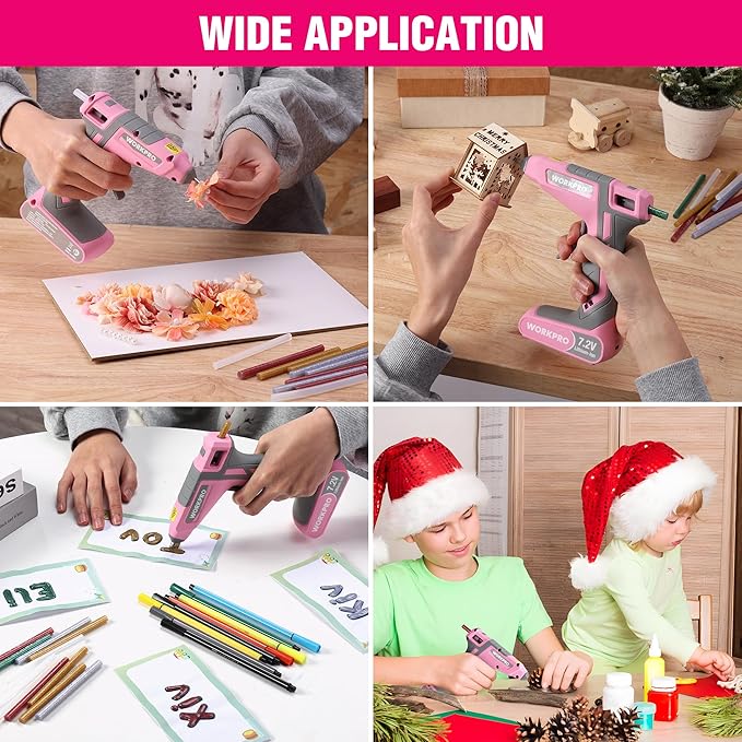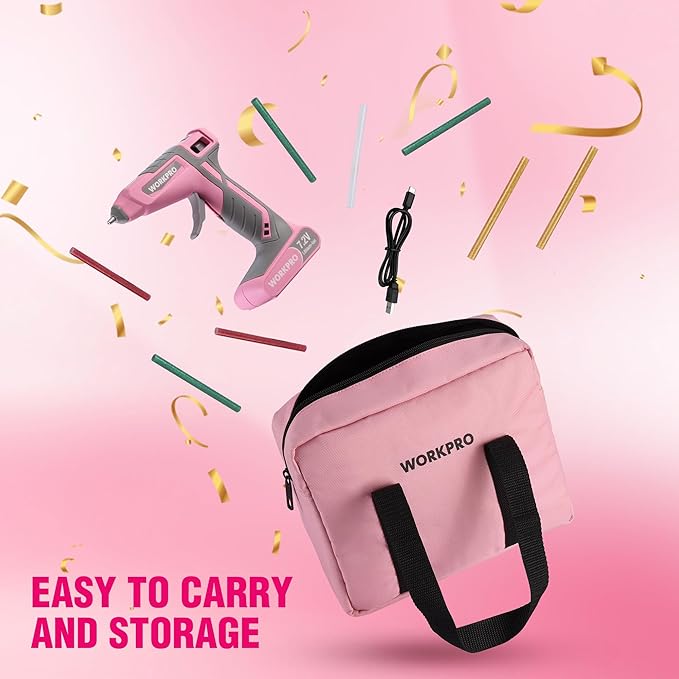 WORKPRO Cordless Hot Glue Gun, 30s Fast Preheating, 7.2V Dual-Temp Glue Gun Kit with 50pcs Glue Gun Sticks, Storage Bag, USB-C Charging Cord, 2600mAh Battery for DIY and Crafting