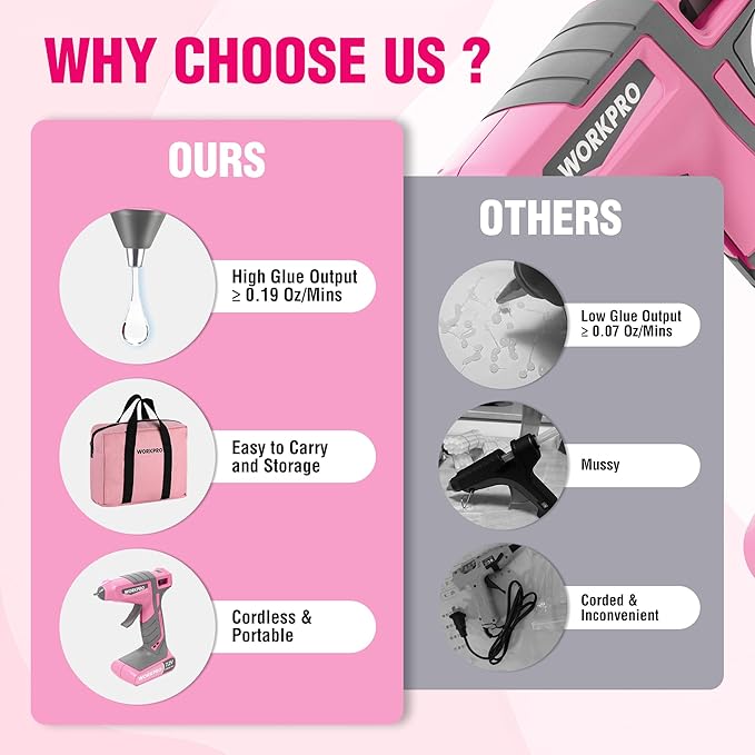 - Convenient Storage: The glue gun and sticks set comes with a pink storage bag, keeping your glue gun, Type-C chearging cable, and glue gun sticks neatly organized. Perfect for easy carrying and storage, it protects your tools from damage