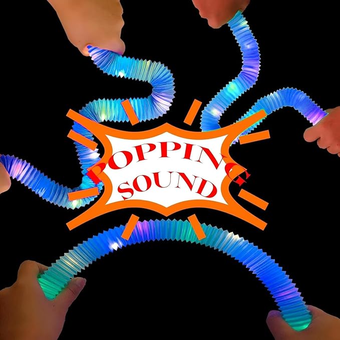 - When you stretch or twist the led pop tubes, it will make a satisfying "pop" sound and special touch, which can help to calm down and relieve anxiety by diverting attention to popping sounds. Nice choice as a playing kids party favors for indoor and outdoor