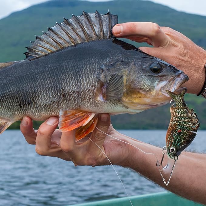 - Lifelike Shape: The freely moving joints and realistic eyes make this bass bait more attractive, It can reflect external light at all angles and has the effect of light attracting fish, which is suitable for different water conditions