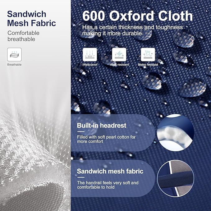 - Comfortable Design: We've added a comfy headrest that's thick and soft, so you can lean back and relax. The back and armrests are made from breathable, durable fabric with sandwich mesh padding, offering great comfort and rebound.