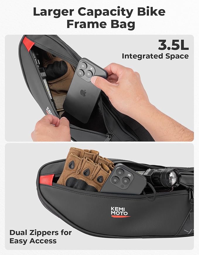 - High-quality Materials: The bike frame bag with large PVC water-resistant panels combined with 900D tear-resistant and sturdy materials can extend the product life cycle. Let KEMIMOTO bike bags help you live a better life