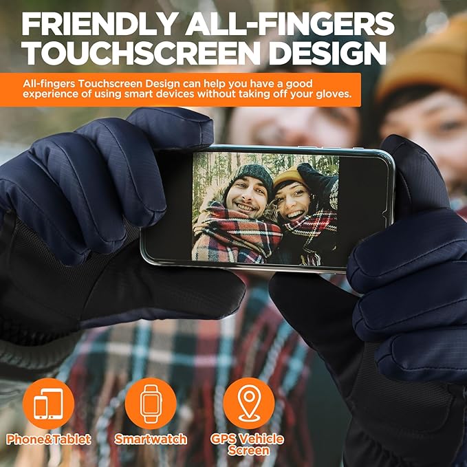 - Sensitive Touchscreen: Our womens and mens gloves both feature a highly sensitive touch screen function, all fingers made of sensitive conductive fabrics. You can easily operate your phone without taking off the thermal gloves, allowing you to stay connected and productive. It is great for phone use, like answering calls or texting, or for working with devices. These phone gloves will be a perfect fit for walking dog, jogging, delivery, skiing, snowmobiling, snowboarding, hunting or camping.