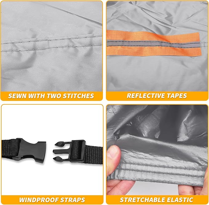 - [SIMPLY TO USE] The reflective strips in the car cover enhance nighttime visibility and parking safety. For added convenience, the door zippers allow for easy access to the interior without the hassle of removing the entire cover, saving time and effort. The windproof elasticized hem around the wheels is designed to firmly hold the car cover in place even on gusty days, ensuring that the vehicle remains protected from the elements