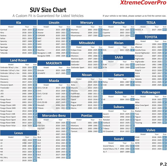 - Coverage : SUV, Full Exterior Coverage