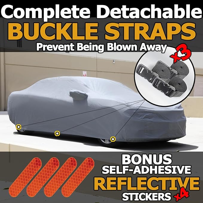 - Wind-Proof Design:Elasticized hem and three fixed buckles help cover against to strong wind,protect your car cover in heavy wind from blowing off.