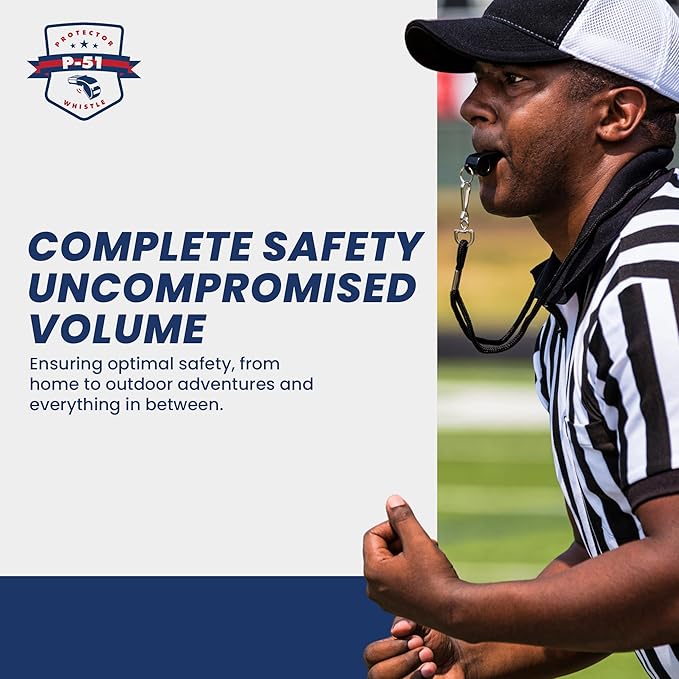The Protector Whistle P51 - Coach Whistle - Official Whistle for Sports, Removable Cushioned Mouth Grip, Loud Safety Whistle for Adults with Breakaway Lanyard - Emergency Whistle Teacher Lifeguard
