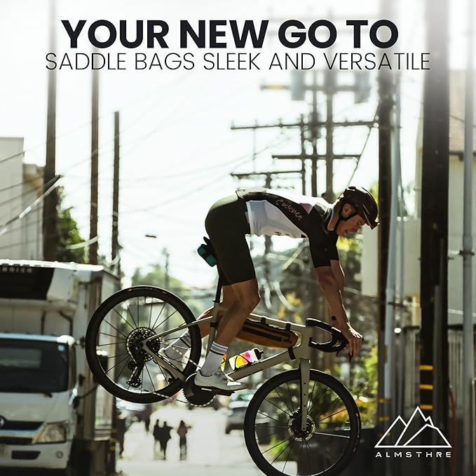 - Your Go-To Adventure Bag: Designed for riders who love to explore, the ALMSTHRE Saddle Bag features premium ripstop material to keep your essentials secure and easily accessible, perfect for any cycling adventure.