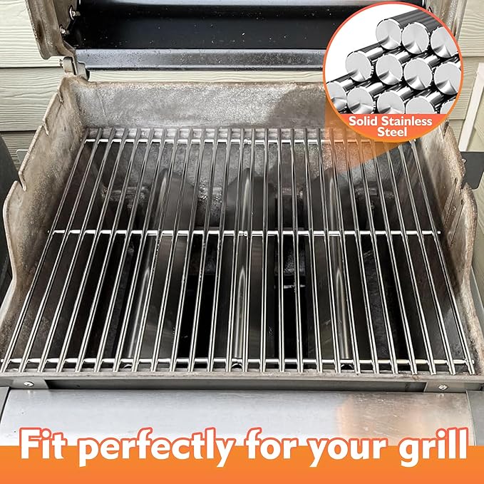 - Premium Material: Our grill grates are crafted from high-quality stainless steel, ensuring durability and rust resistance. The design features small gaps to prevent food from falling through, providing stability during cooking. With excellent heat conductivity, the stainless steel ensures even heating across the grate, enhancing your grilling experience. Enjoy your family gatherings and the delicious excitement that perfectly grilled food brings.
