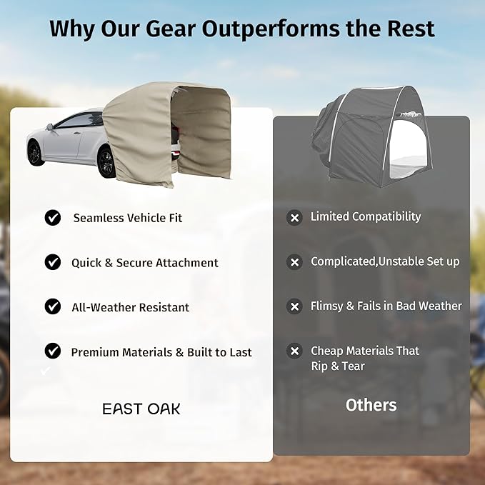 - ๐จ๐ป๐ถ๐๐ฒ๐ฟ๐๐ฎ๐น ๐๐ถ๐ ๐ณ๐ผ๐ฟ ๐๐ป๐ ๐ฉ๐ฒ๐ต๐ถ๐ฐ๐น๐ฒ: Designed to fit most SUVs, trucks, and sedans, this tailgate awning will ensure a snug, secure connection every single time. Its versatile design seamlessly integrates with East Oak camping tents and will provide stable, weatherproof coverage for tailgating, camping, or overlanding. Enjoy extra shade, protection, and comfortโany season, anywhere.