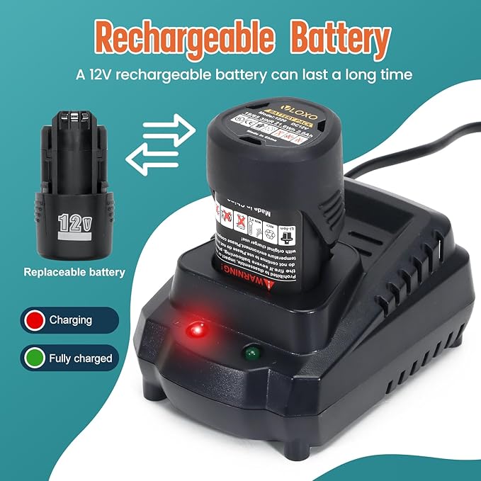 - Rechargeable and Replaceable Battery: This power box cutter is equipped with a built-in battery. Provide continuous power output to the machine and improve cutting efficiency. At the same time, we also prepare replacement batteries for you, so that you can cut non-stop. When the charging seat is charging, the red light is red; After full, the green light.