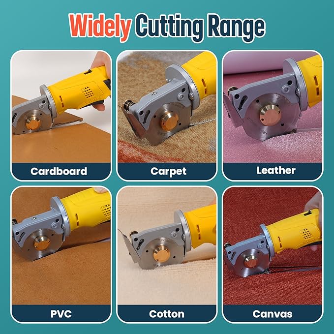 - Cutting Material Wide: This cordless electric cutter for fabric is suitable for cutting multi-layer cloth, fabric, cotton, silk, synthetic fiber, leather, and other materials. It is a convenient cutting tool for home or industrial use.