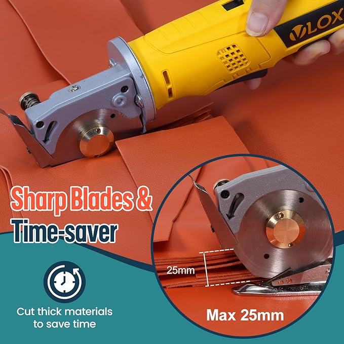 - The Cutting of Lightning-Fast: The VLOXO electric rotary fabric cutter features a modern, labor-saving design. We have equipped it with a 2000RPM no-load speed capacity so that you can experience its rotating speed like lightning. Feel that every cut is effortless.
