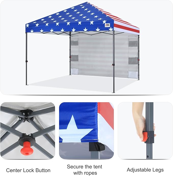 ABCCANOPY Pop Up Canopy with Sidewall,10x10 Outdoor Canopy Tent with Storage Sidewall for Commercial Events with 4 Weights (American Flag)