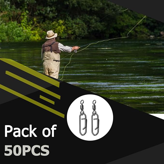 - Swivel Clips Fishing Quick Change : These swivels fishing snap are built with durability in mind. Made from high quality material, fishing snaps clips are rust resistant and corrosion proof, ensuring long lasting performance in both freshwater and saltwater environments. Our fishing swivel rolling can be quickly and easily attached to your fishing line without the need for complex knots. The swivel mechanism ensures your line remains tangle free, even in the most challenging conditions.