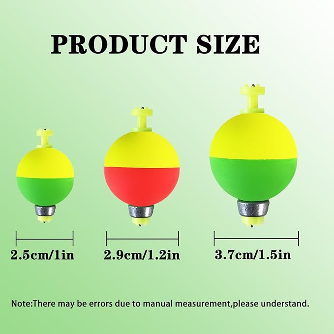 • 【Procuct Size】10 packs/set fishing corks,floats & bobbers. Diameter:1inches;1.2inches;1.5inches,three sizes for you. Lightweight and long-lasting,ensure your happy fishing experience.
