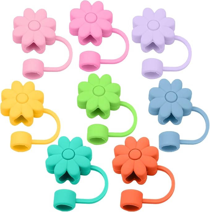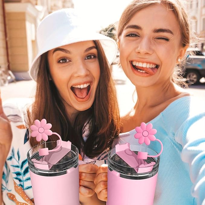 8PCS Silicone Straw Covers Toppers for Stanley Cups 30&40 Oz Tumbler Accessories Flower Straw Caps Pink Blue Dust-Proof Reusable Straws Tips Protectors for Stanley Cup 10mm 0.4in Straws