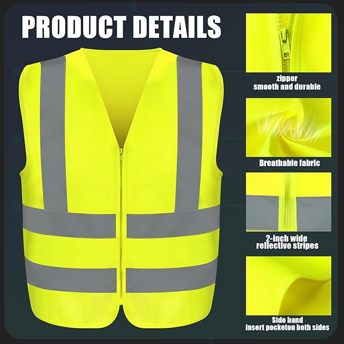 - Package Includes: you will receive 20 reflective safety vests, all with 2-inch wide silver reflective strips on the shoulders, chest, waist and back, suitable for construction sites, roadside work. (Please check the size chart before purchasing)