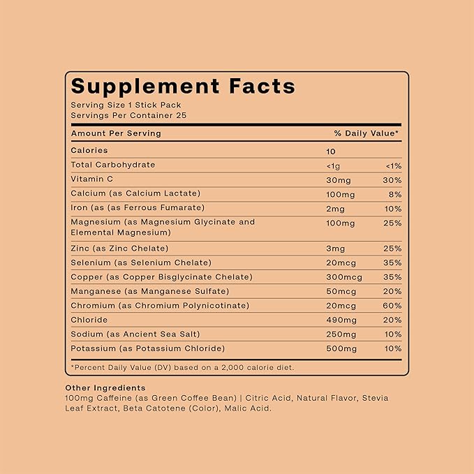 Hydrofy Hydrogen Water + Electrolytes Drink Mix | H2 Hydration Packets with Molecular Hydrogen, Sodium, Potassium, Magnesium, Calcium, and Minerals | No Sugar | Orange + Caffeine 25 ct