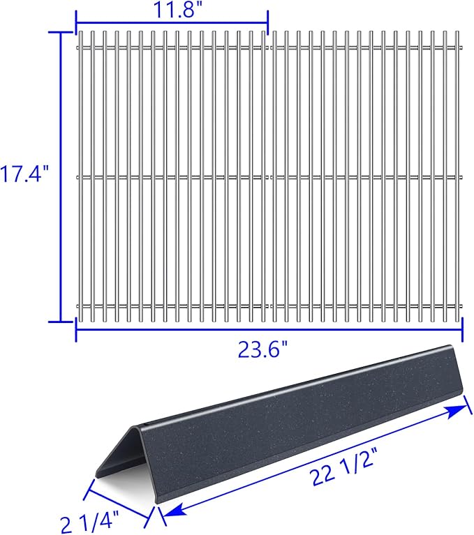 - DIMENSION: Cooking grate dimension: 17.4" x 11.8" for each, 17.4" x 23.6" for total, Flavorizer Bars: L 22.5" x W 2.3" for 5 units